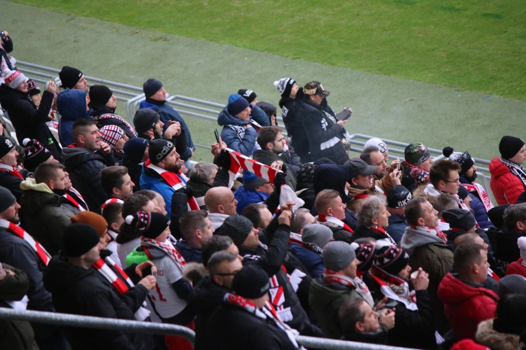 Kibice Korony Kielce na miejscu. Jest tłum.