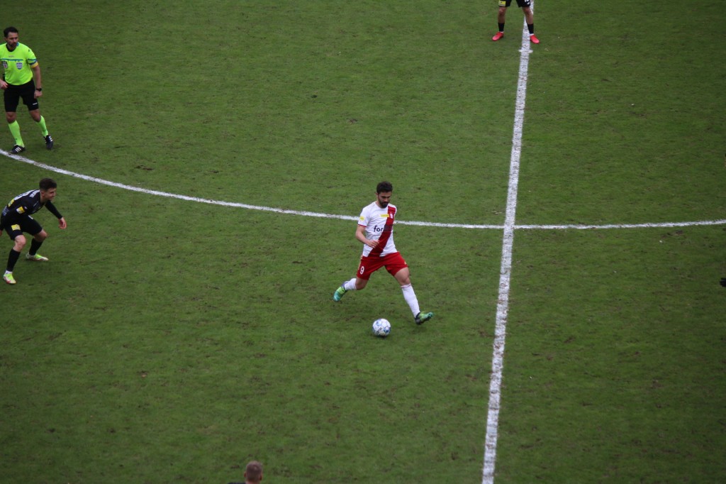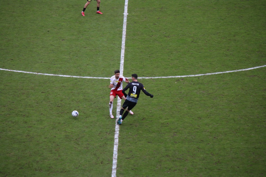 Dużo walki w środku pola, przechwyt Korony, próba podania do środka, ale ta zostaje zablokowana przez drużynę przeciwną.