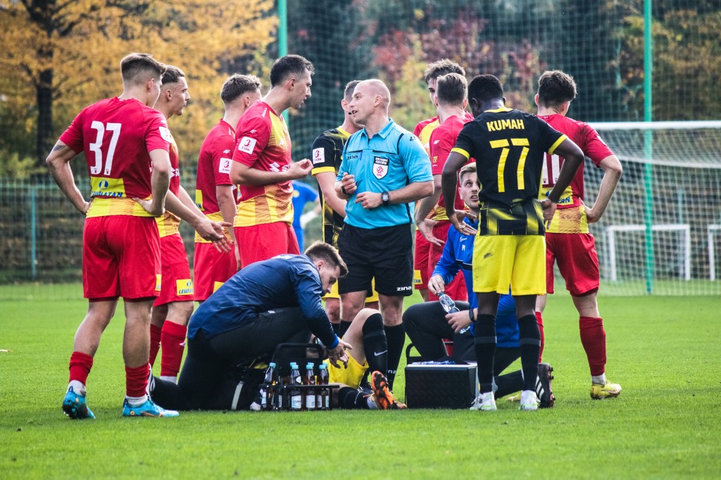 Długo czekaliśmy na wznowienie, bo piłkarze mają skurcze. Poskładało kilku. Chrobry w ataku!!!