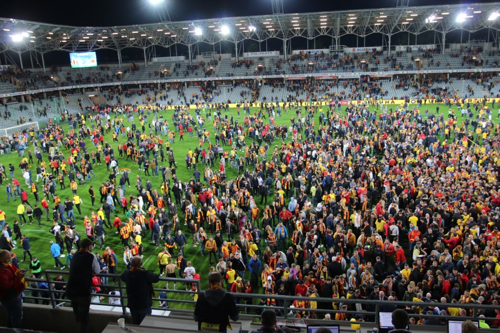 Co za radość!!! Ludzie ściskają się ze szczęścia!!! To bbył bardzo ciężki mecz. Skandują imie Jacka Kiełba, który tym meczem przypieczętował status bezapelacyjnej legendy Korony Kielce!!!