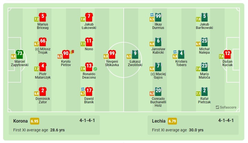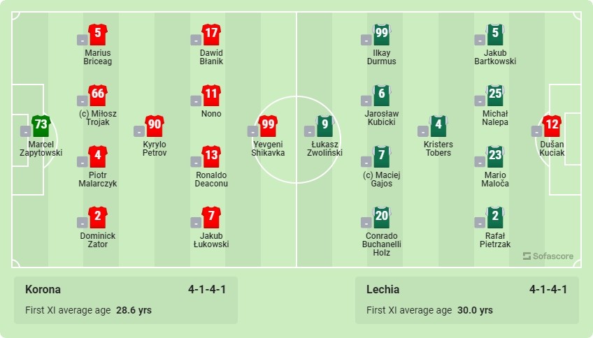 Z Korony wejdą Podgórski i Takac. Ale czekamy. Na razie rożny. A nie, jednak najpierw zmiana. |Schodzą Błanik oraz Deaconu. Wymiana 1:1.