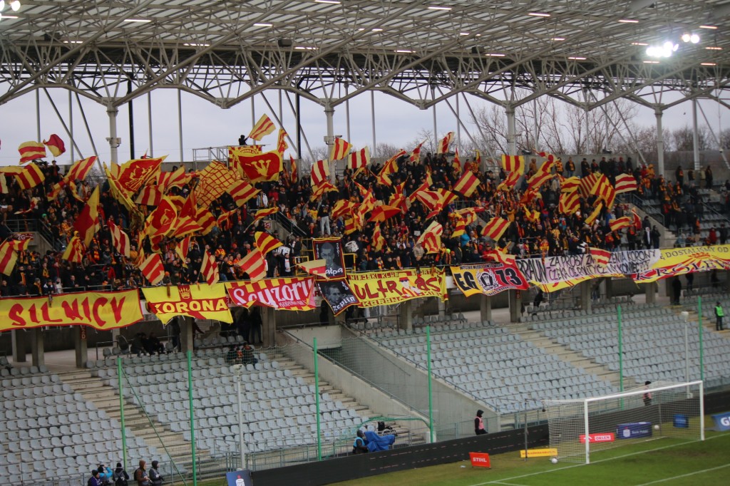 Kibice Korony bardzo głośno. Wkrótce zdjęcia. Błanik żyje, gramy dalej. Teraz fatalny błąd Zapytowskiego! Minął się z piłką, ale sytuację naprawia Trojak!