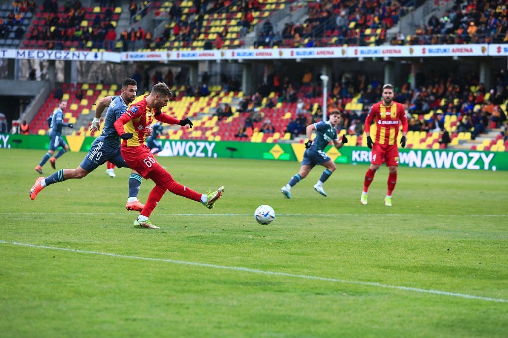 Korona z miejscem na kontratak! Nono uderza! Ale zablokowane. Był blisko Podgórski, ale Nono uparcie grał na front. A teraz Paixao na boisku za Gajosa.