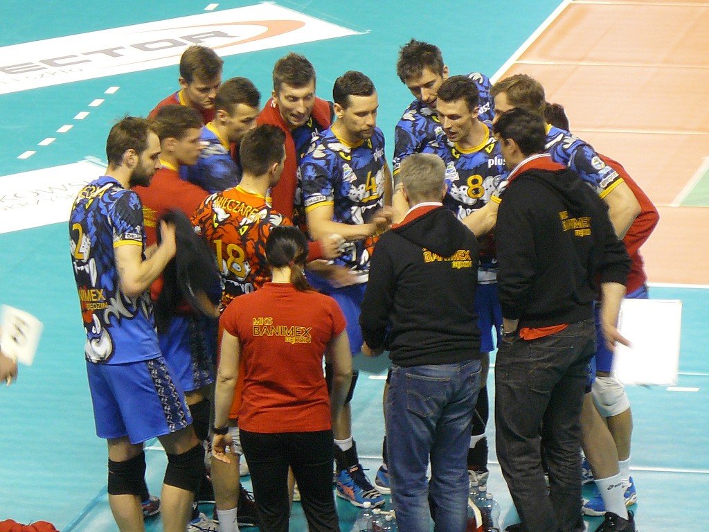Czas wziął Daszkiewicz. Punkt jednak kolejny dla Banimexu. Bardzo mocny atak Hebdy i wściekły Kaczmarek, ale nie dał rady obronić tej piłki. Matchball.