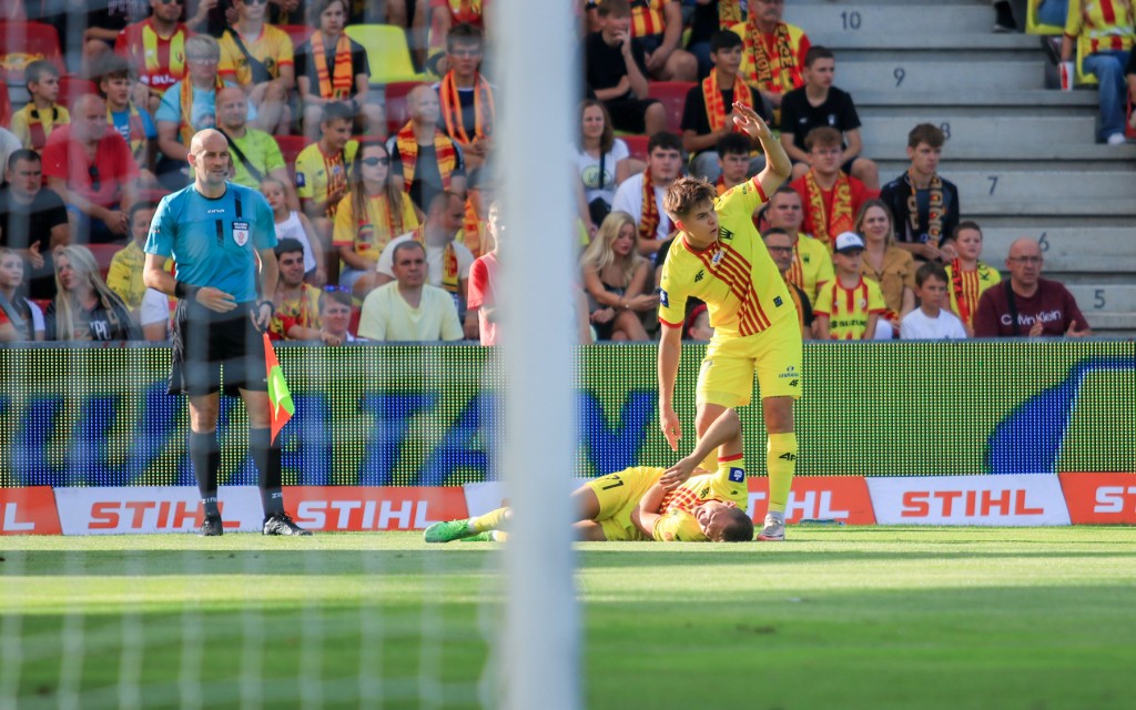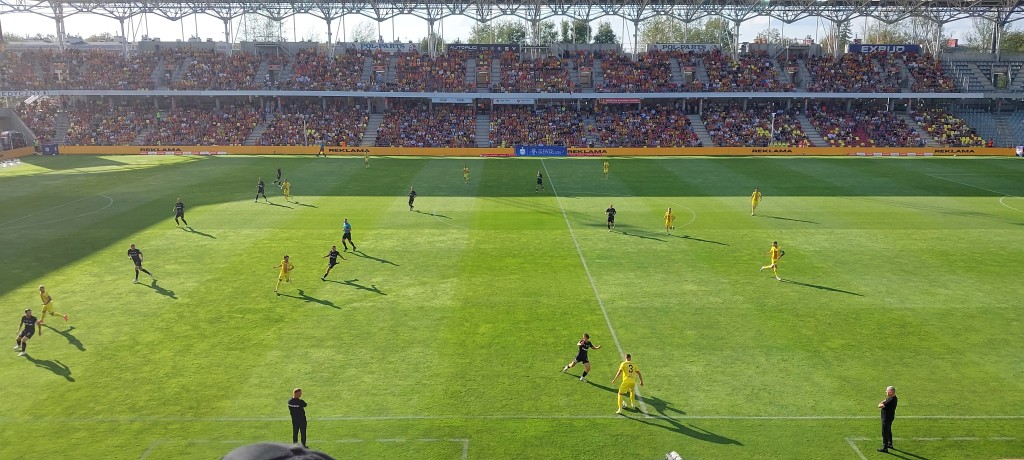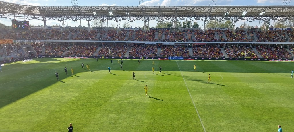 Napomnienie dla Virgila Ghițy za ostry faul na wysokości pola karnego gości. Leżał przez chwilę Wiktor Dlugosz, ale się podniósł