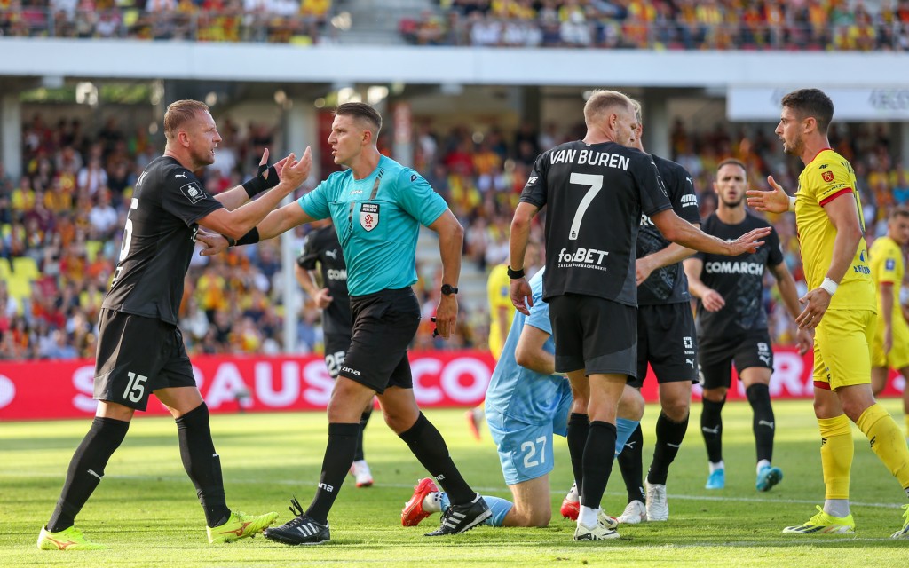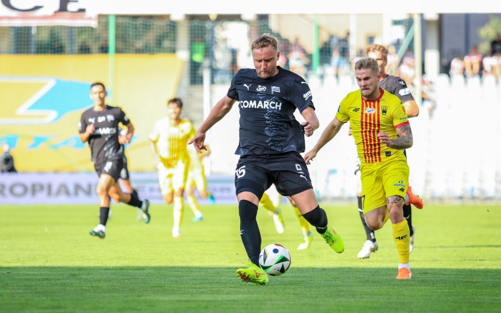 Konrad Matuszewski też z żółtą kartką za groźny wślizg na Kakabadze