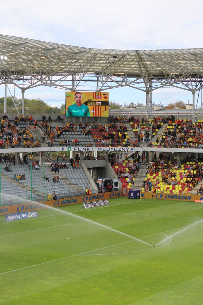 Bardzo dobre uderzenie z główki, po dośrodkowaniu Pięczka i jest bramka. Warto zaznaczyć, że korner wziął się z innej groźnej akcji Korony Kielce. Żółto-czerwoni prawie wcisnęli piłkę już wtedy, ale jednak strzał został zablokowany. Ale widać było, że kibice domagają się krwi rywala. Spontaniczne okrzyki KORONA, KORONA dały o sobie znać i tak mocno rezonowały w głowach gospodarzy, że to musiało się skończyć golem.
