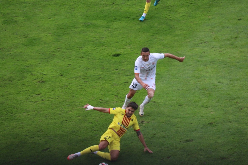 Teraz Nuno zatańczył z rywalem, przytulił do klatki piersiowej piłkę, ułożył sobie, doszedł do linii końcowej, dośrodkował i mamy rożny. Niby nie było wielkiego zagrożenia, lecz futbolówka leciała na poprzeczkę, na co Hładun musiał zareagować.
