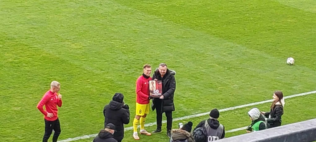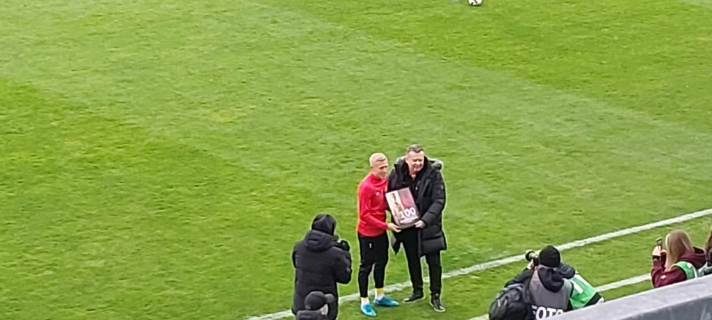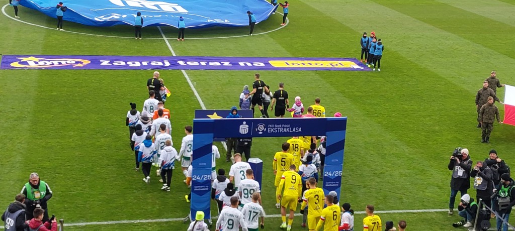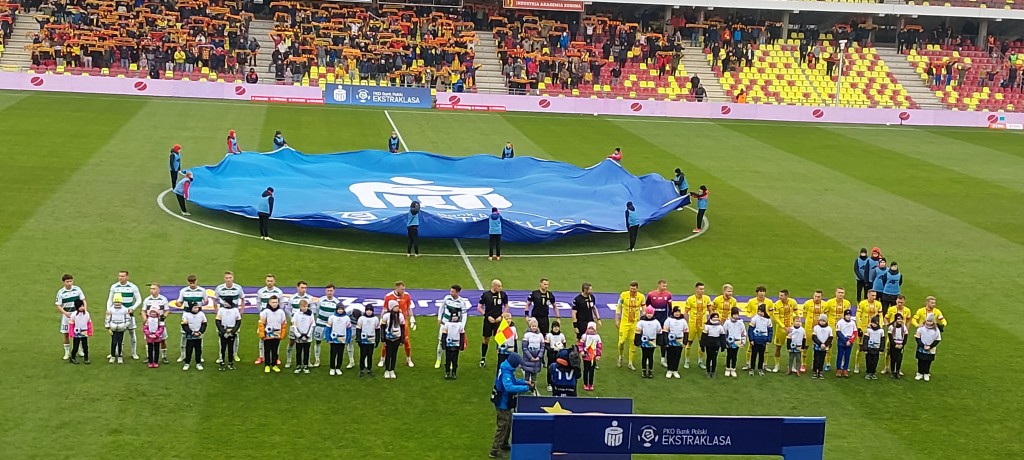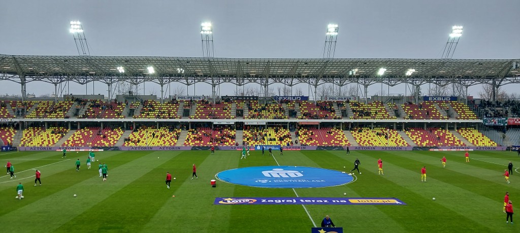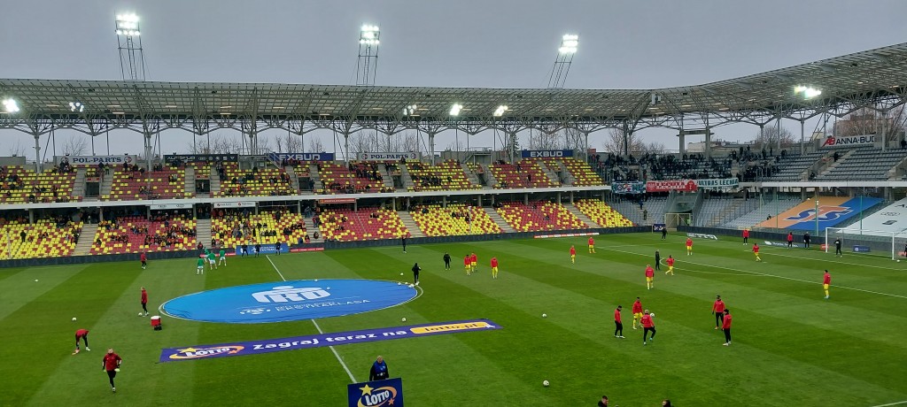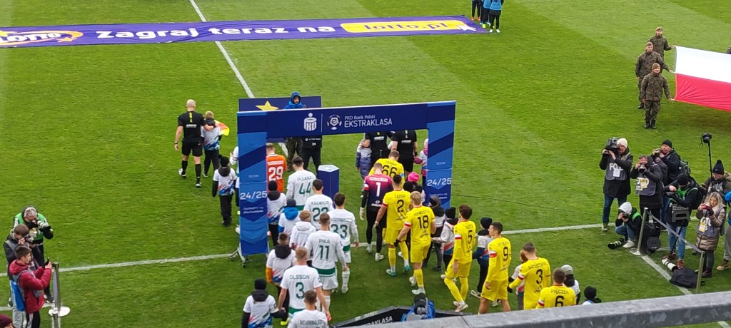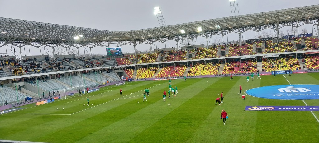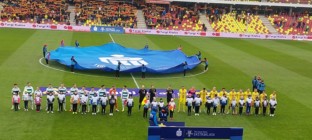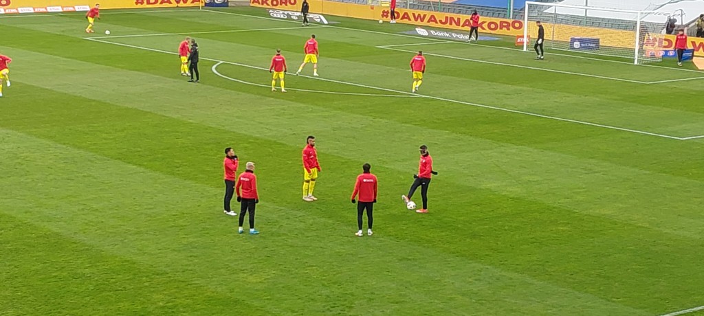 Miła uroczystość przed spotkaniem. Prezes Jankowski wręczył pamiątkowe antyramy Dawidowi Błanikowi i Martinowi Remaclowi za steny i pięćdziesiąty mecz w „żółto-czerwonych” barwach. Co ciekawe, dziś swój 100 mecz w Koronie rozgrywać będzie Jewgienij Szykawka, czy przełamie dziś swoją niemoc w elicie? Oby.