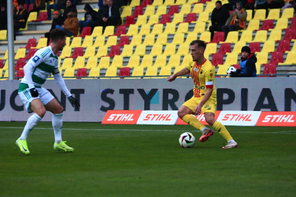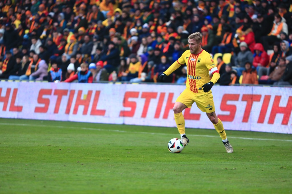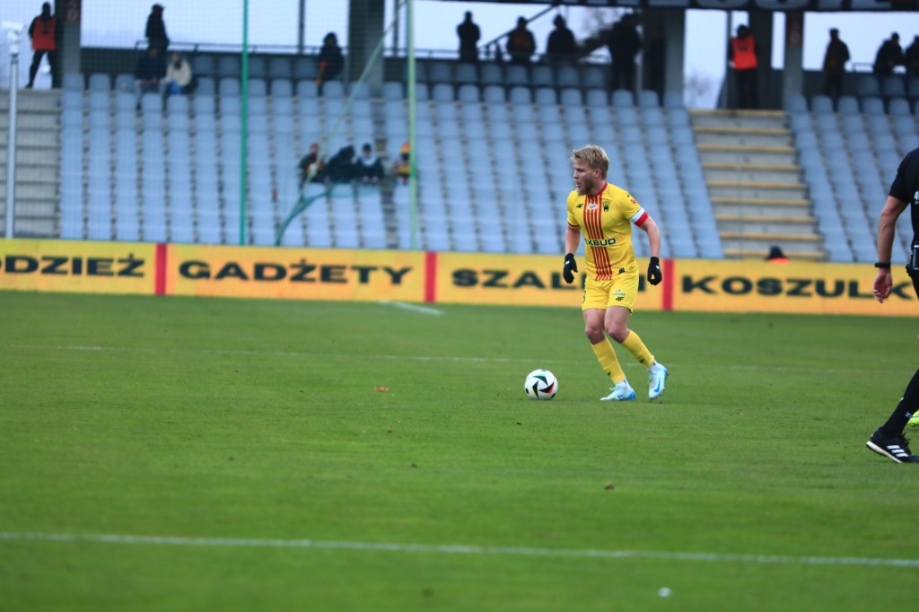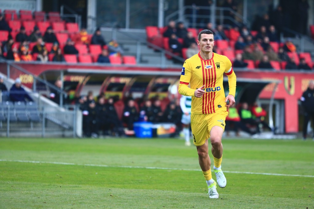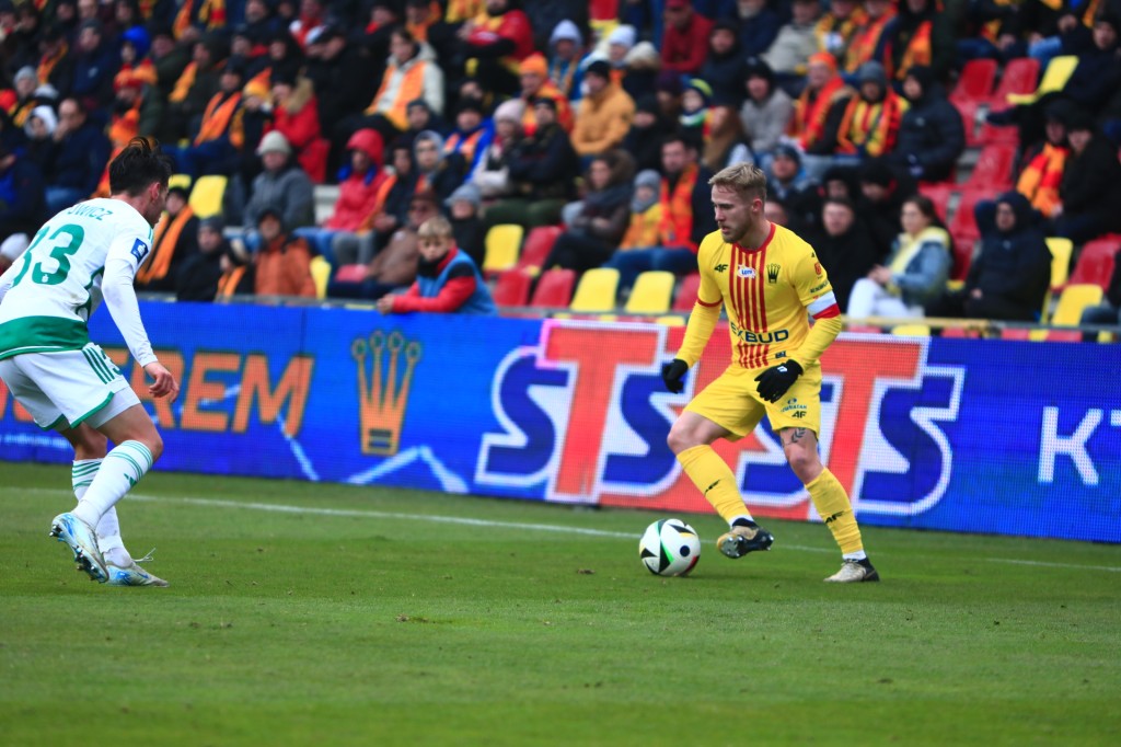 Dominick Zator stracił piłkę przy dwójkowej akcji z Błanikiem, jeden z gorszych meczów Kanadyjczyka od kiedy jest w Koronie