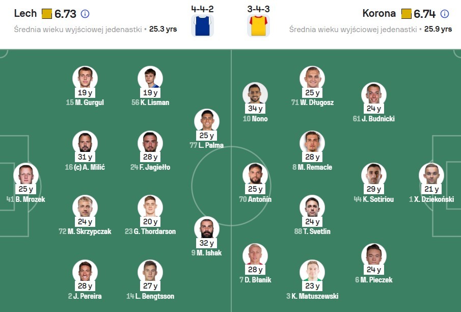 Lech Poznań: Mrozek – Pereira, Skrzypczak, Milić, Gurgul – Thordarson, Jagiełło, Palma – Bengtsson, Ishak, Lisman