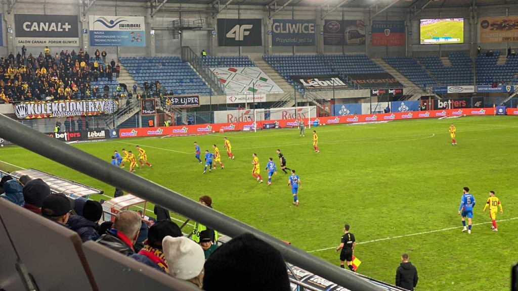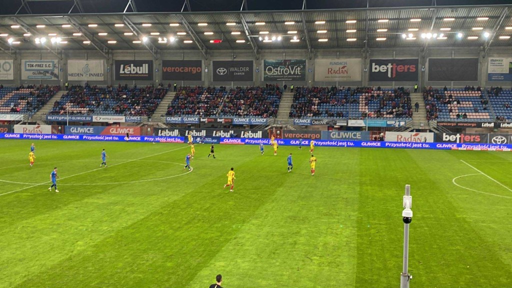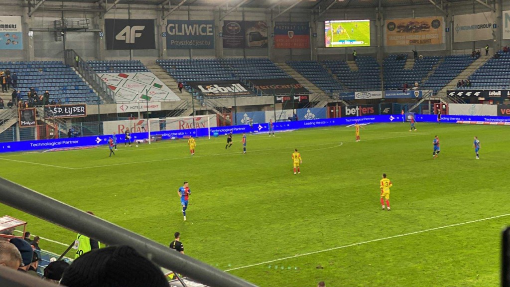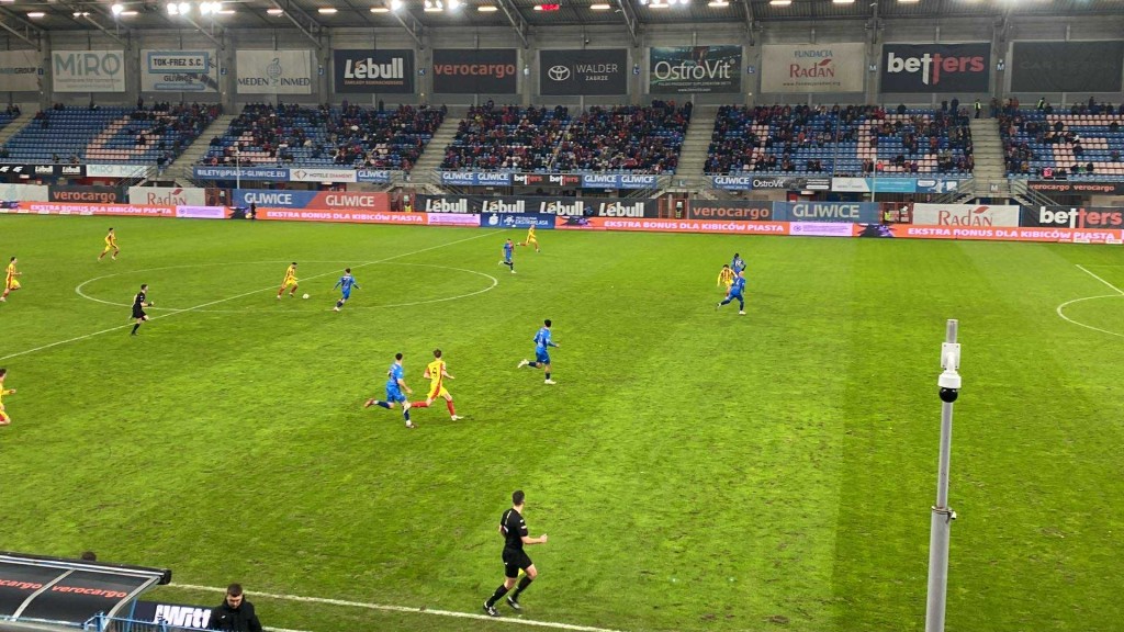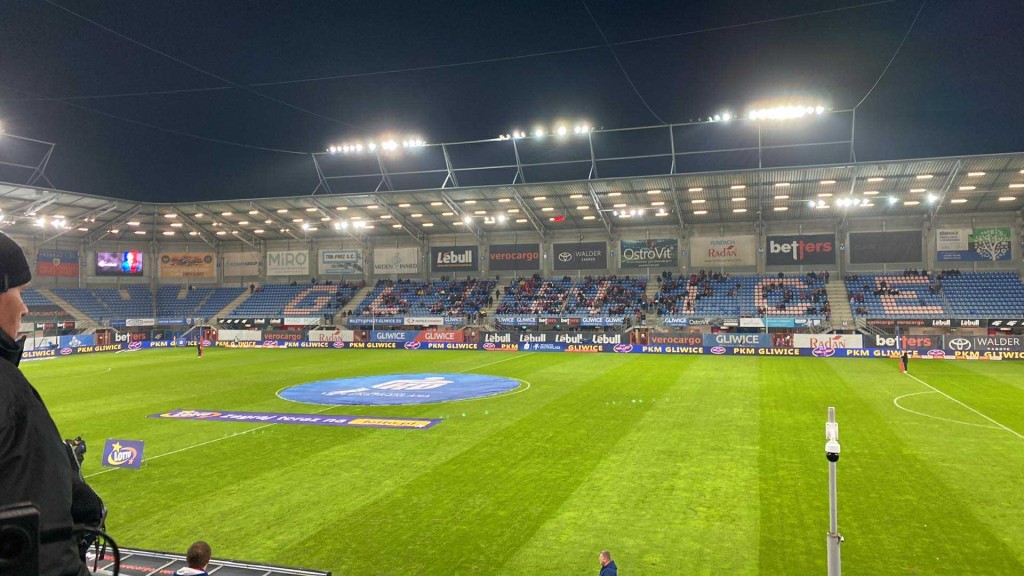 Stadion w Gliwicach nie jest jakoś specjalnie szczelnie wypełniony. Widać oddaje to lokalne nastroje.
