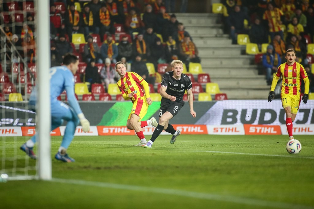 Długosz na krótkim próbuje zaczarować bramkarza gości uderzeniem z piętki! Madejski z problemami, ale radzi sobie. Choć nie do końca, gdyż pressing Długosza skutkuje kolejnym rożnym. Korona jednak nie zdołała go odpowiednio spożytkować.