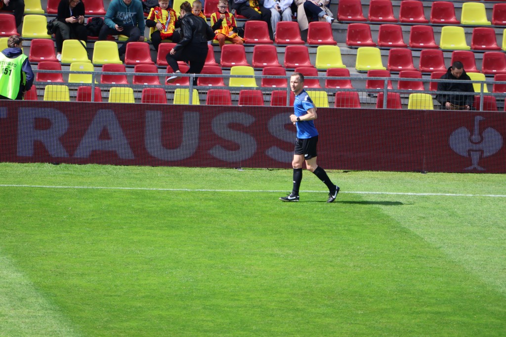 Dawid Błanik. Marius Olsen wybija a sędzia Frankowski zakończył pierwszą połowę