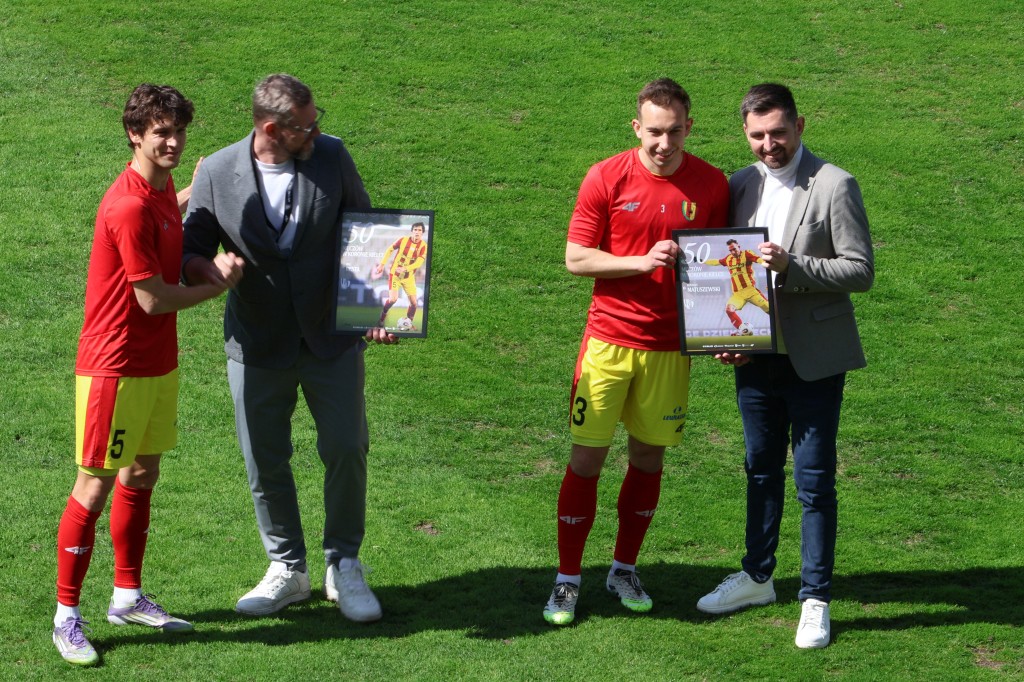 Konrad Matuszewski i Pau Resta odebrali pamiątkowe patery za 50 występów w Koronie