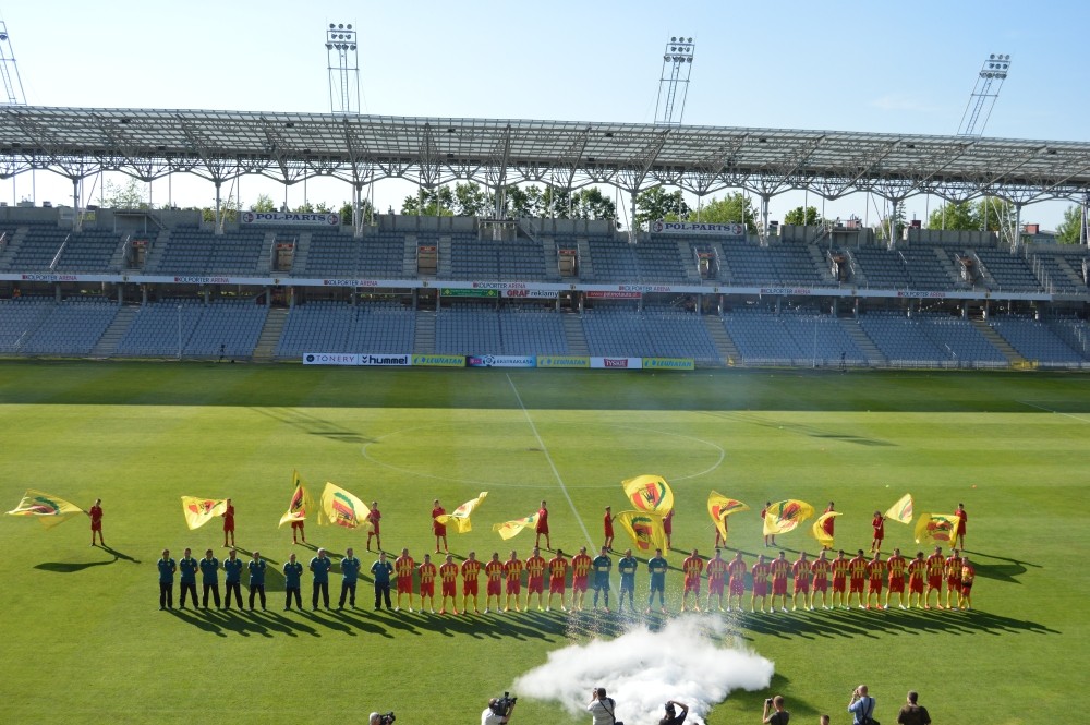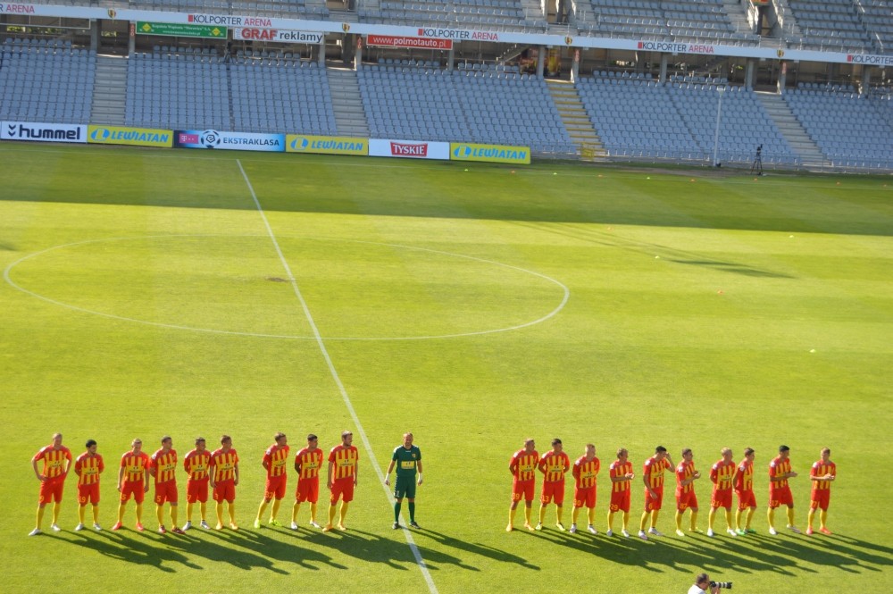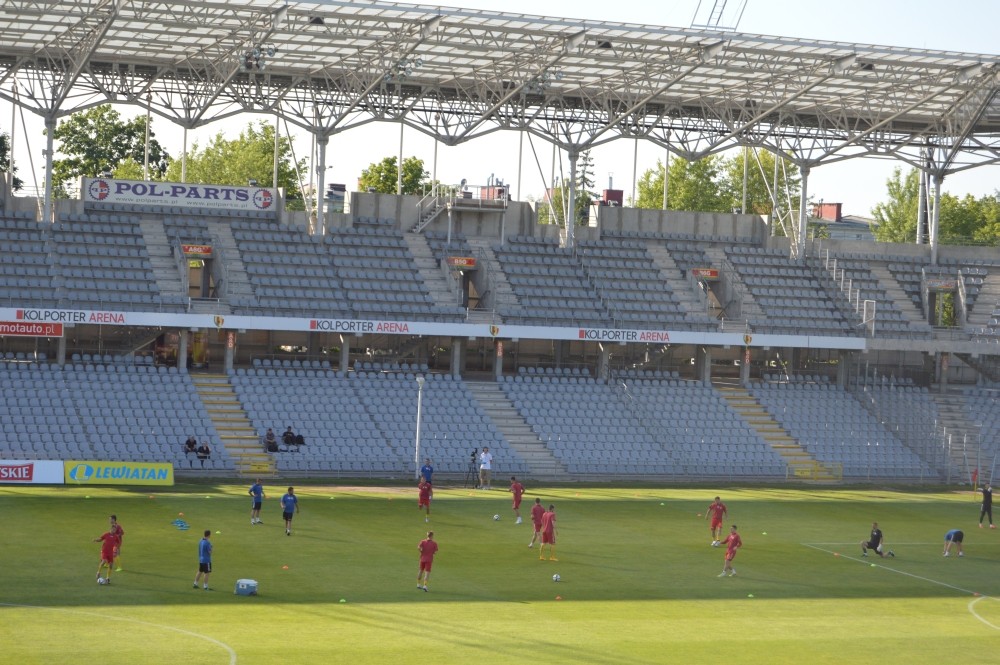 Dzień dobry! Chciałoby się napisać - witamy z wypełnionej po brzegi Kolporter Areny przed prezentacja zespołu i meczem z Hapoelem Beer Sheva. Ale nie - tu nie dzieje się w tym momencie zupełnie nic. Kibice co prawda powoli się schodza, ale na murawie zielono, puściutko. A poczatek prezentacji już za nieco ponad 20 minut. No nic, może zaraz coś się ruszy. Jakby nie było - witam, zapraszam, Marcin Długosz!