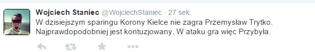Nasz redakcyjny kolega, Wojtek Staniec II, donosi, co się dzieje z Przemysławem Trytka, którego nie ma dziś nawet na ławce.